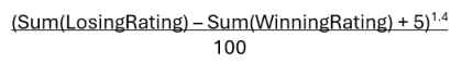 will dictate how many points the winners get, and how many points the losers lose. I'm still working through the formula, but a rough draft looks